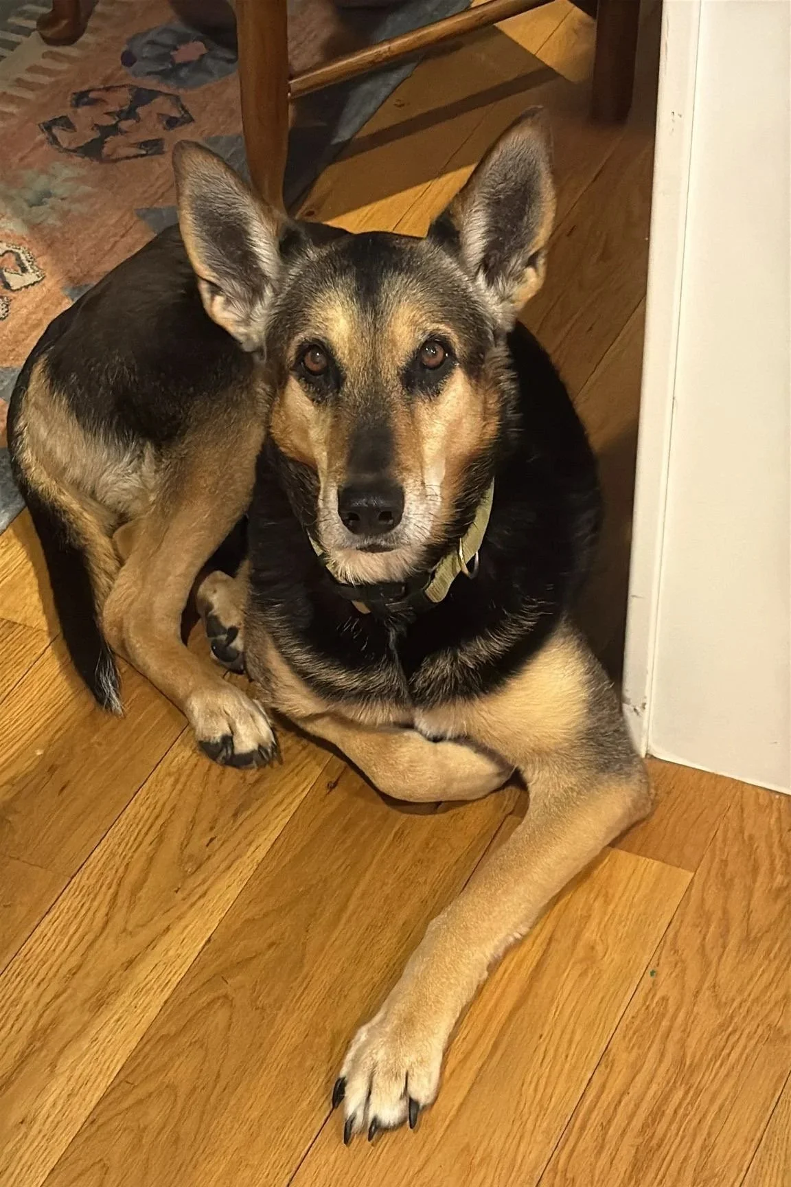 Ms. Ginny was rescued in Antigua, Guatemala, and brought with her a gift for connection. She has a natural ability to comfort both dogs and people, often becoming the “big sister” to rescues who are scared or uncertain. Her gentle presence helps nervous dogs gain confidence, proving that healing often begins with quiet love and steady reassurance. Ginny has nurtured and guided dozens of rescues into balance, showing them the comfort of pack life and preparing them to thrive as family dogs.