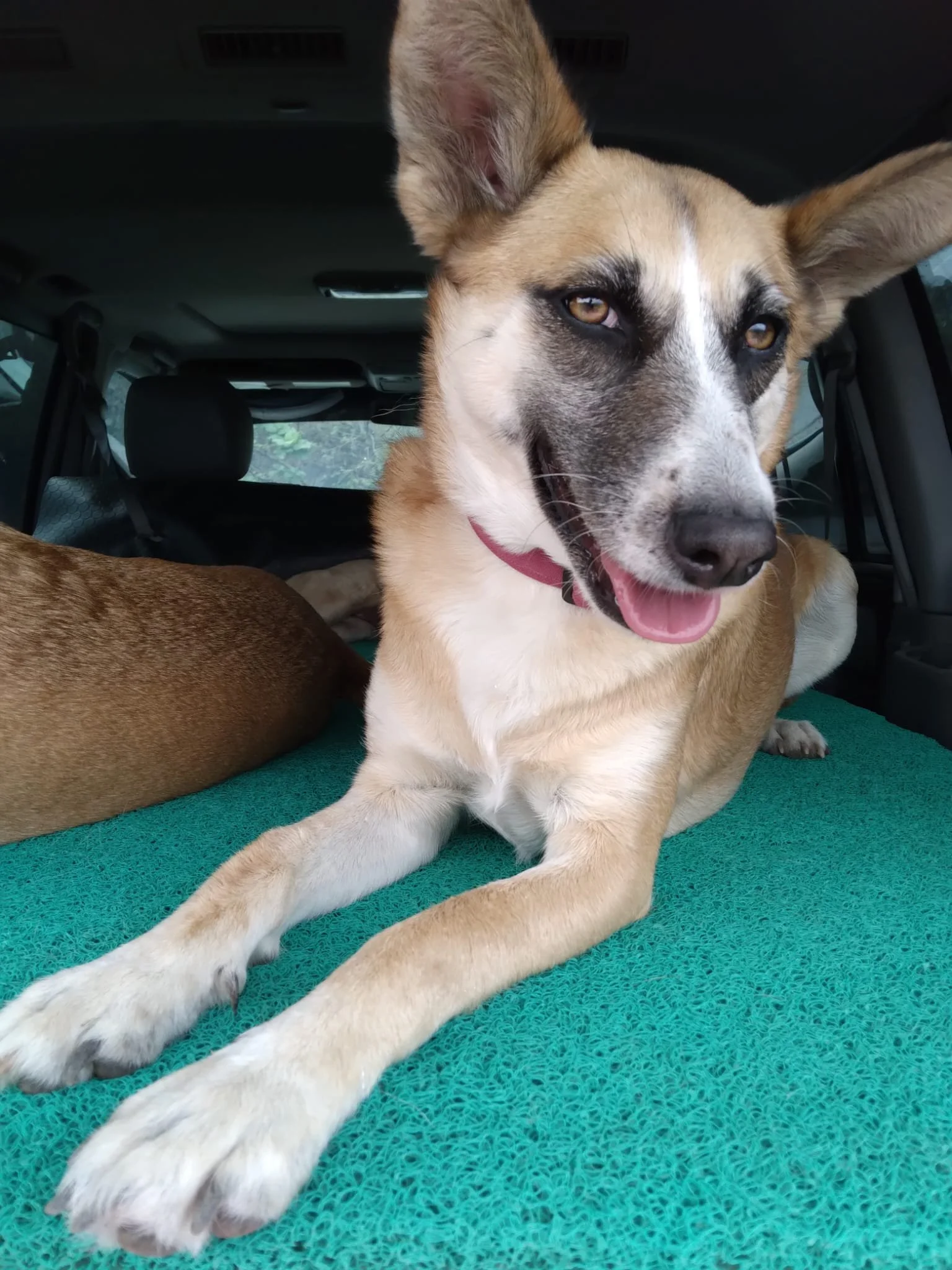 Dhurva found her place in our pack in Jocotenango, Guatemala. Calm, confident, and deeply intuitive, she naturally steps into the role of protector. She helps new dogs feel secure, setting boundaries and maintaining balance within the group. Many fearful or reactive rescues have learned stability and confidence by her side. Through her guidance, she has trained and socialized dozens of dogs, showing them that safety comes through calm leadership and trust. -